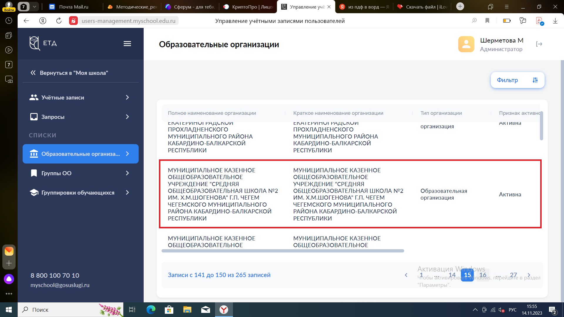 Приказ о назначении администратора и подключении образовательной организации к ФГИС "Моя школа" (07.09.2022)