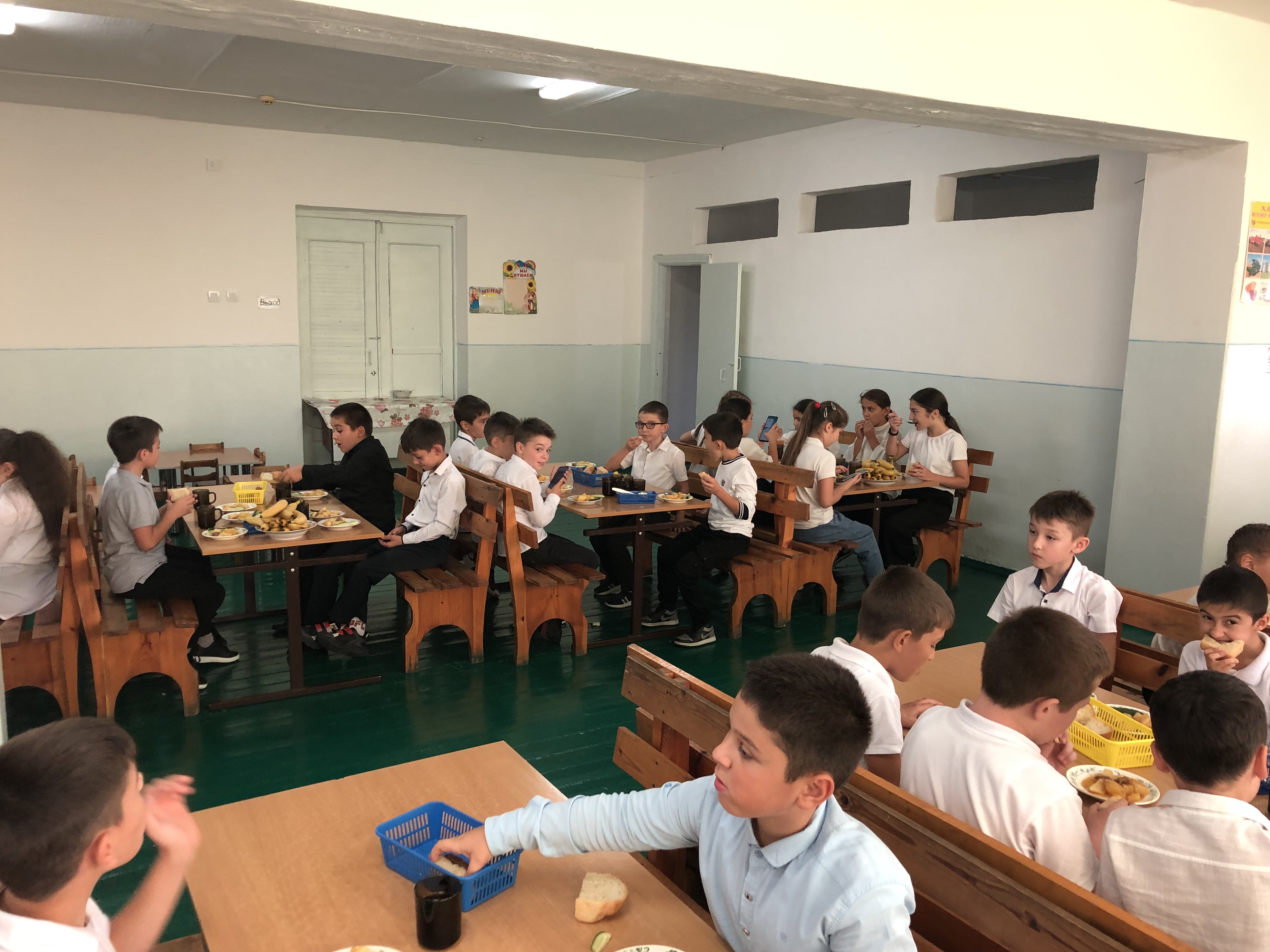 Столовая обеспечена необходимым количеством тарелок, кружек, ложек.