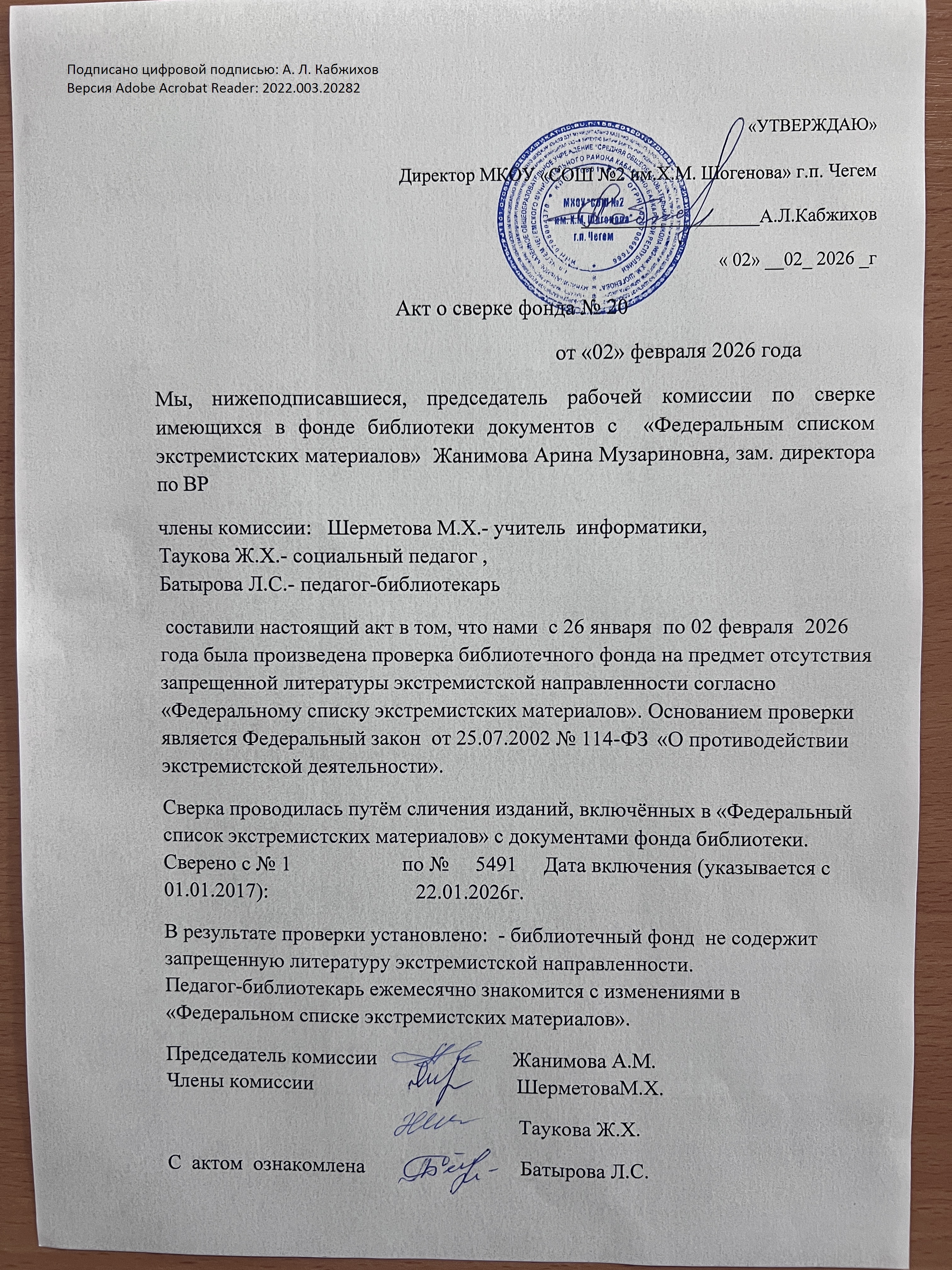 Акт о сверке фонда №20 от 02.02.2026 г. (02.02.2026 г.)